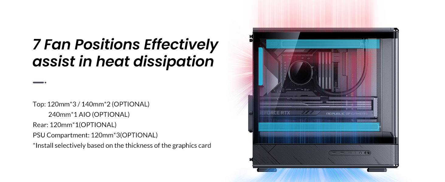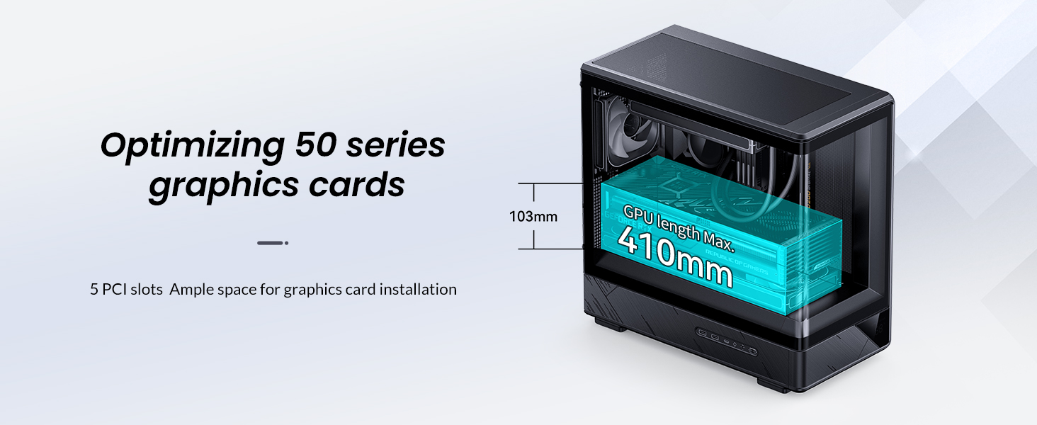 JONSBO D200 Black Micto ATX PC Case,Digital Screen, One-Piece Curved Glass Desktop Design 270° Ultra-Wide View,ATX Power supply/Dual240 AIO,GPU<410mm,7 Fan Positions, Black