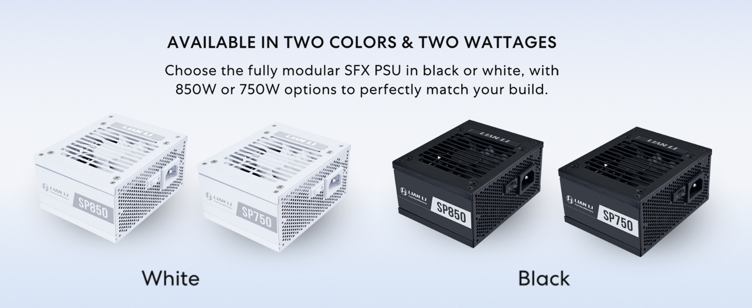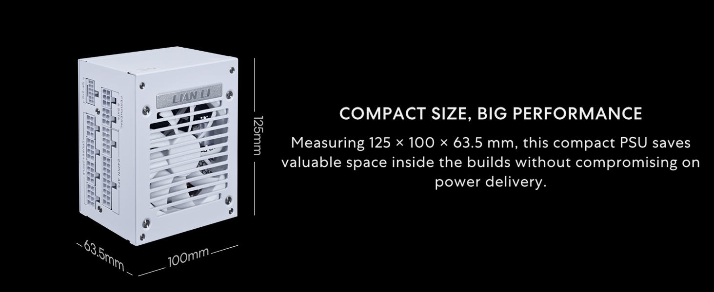 • Lian Li SP SFX PSU: Designed to fit the official ≤63.5mm size specification, this power supply offers efficient cooling with an upgraded 92mm FDB fan for quieter operation and longevity. Part of the Lian Li SP Gold series, it is engineered for high performance and silent operation.