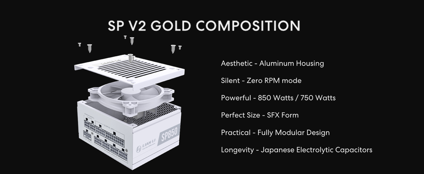 Lian Li SP V2 750 Watt SFX Form Factor Power Supply with Native 12V-2x6 Cable - Low Noise - 80+ Gold Efficiency - ATX 3.1 & PCIe 5.0 Compliant - 92mm FDB Fan - 10-Year Warranty - White (SP750G.W)