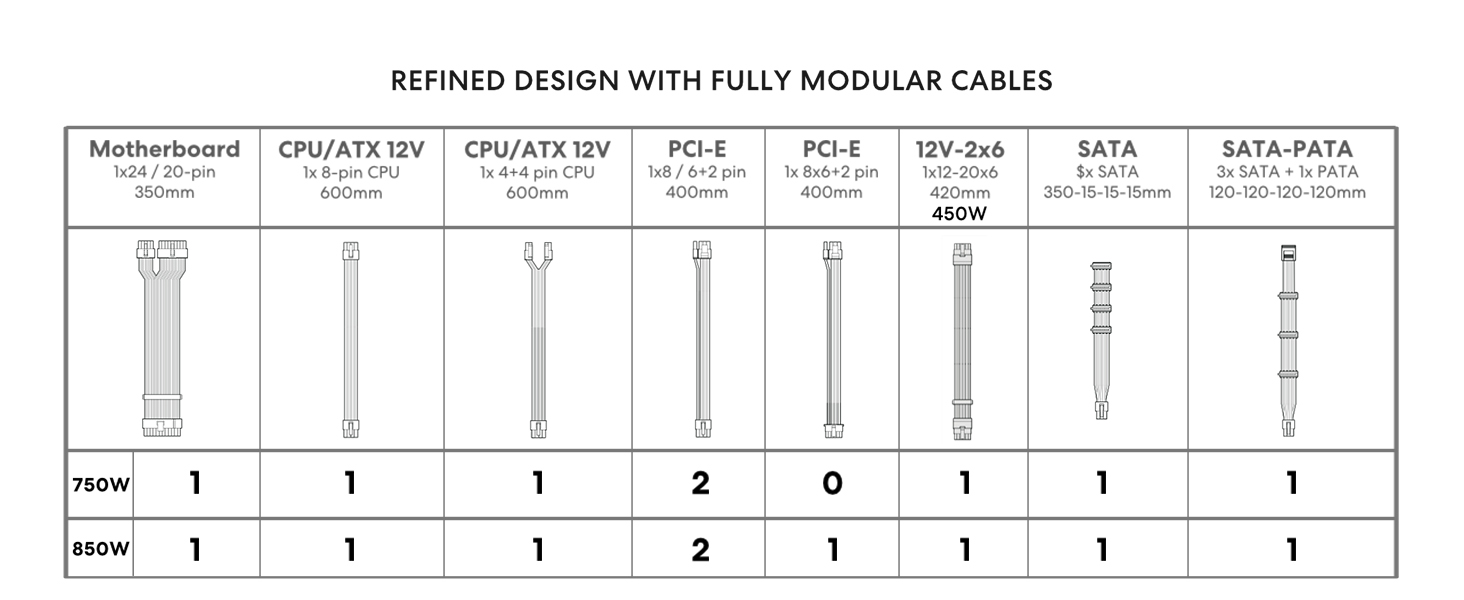 • Fully Modular PSU: Reliable and efficient low-noise power supply with fully modular cabling, so you only have to connect the cables your system build needs.